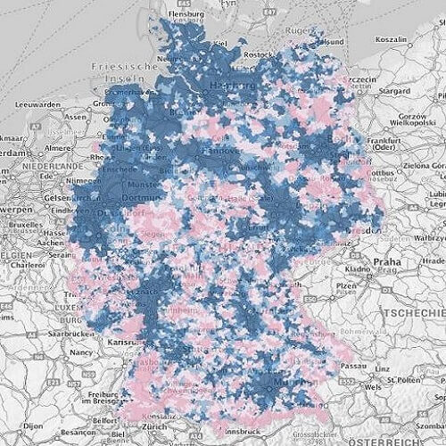 Darstellungsdienst für den Datensatz aus https://www.deutschlandatlas.bund.de : Mobile Breitbandverfügbarkeit mit LTE ab 2Mbit/s in % der Fläche im Jahr 2021. Mobilfunkstandards sind LTE und der Nachfolger 5G. Aktuell werden beide Varianten verwendet, um mit mobilen Endgeräten auf Online-Dienste zuzugreifen. Downloadraten ab 2 Mbit/s gelten als Untergrenze für eine sinnvolle Nutzung. Der überwiegende Teil der Gemeinden ist mit über 97 Prozent ihrer Fläche mit LTE-Bandbreiten von mindestens 2 Mbit/s versorgt. Ungefähr die Hälfte der Gemeinden besitzt eine Flächenabdeckung mit LTE von fast 100 Prozent.